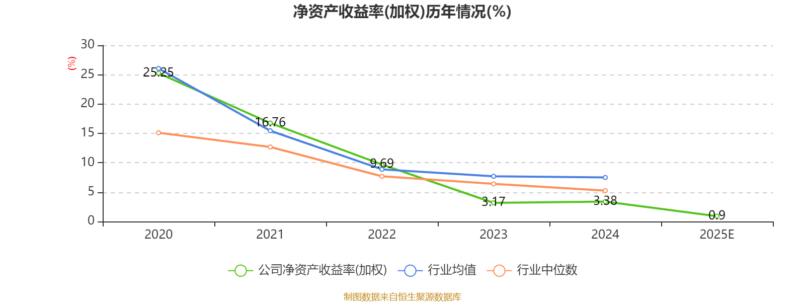 数据显示,2025年公司加权平均净资产收益率为0.9%,较上年同期下降2.48个百分点。