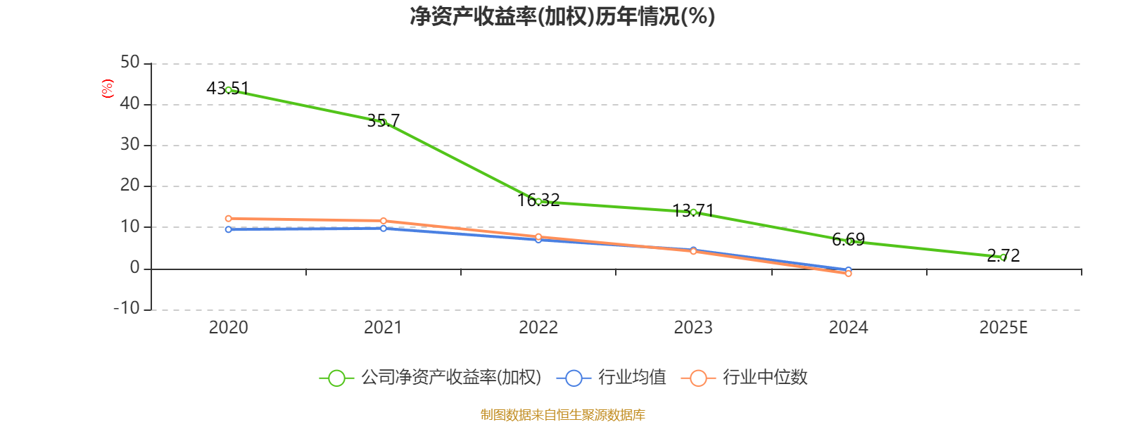数据显示,2025年公司加权平均净资产收益率为2.72%,较上年同期下降3.97个百分点。